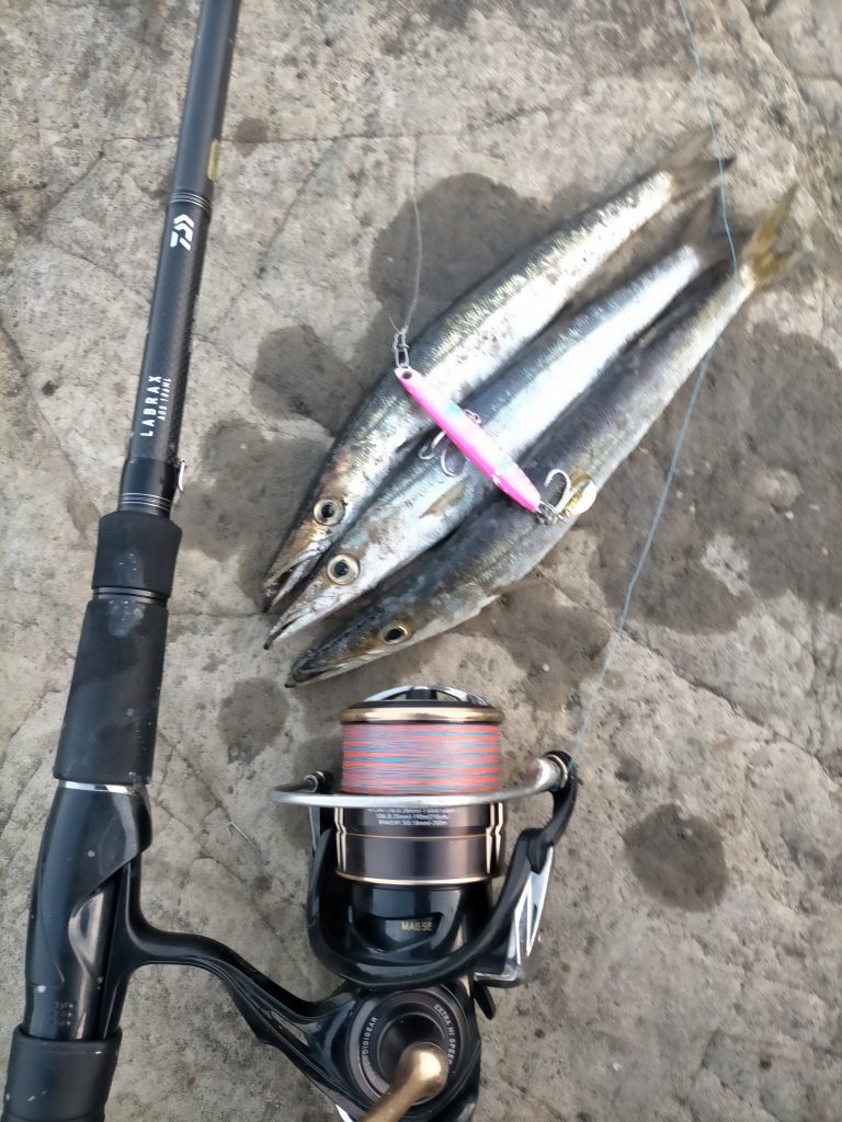 今日はカマス仕様のpe1.0、シーバスロッドのLABRAX106mlかなり無理がある。