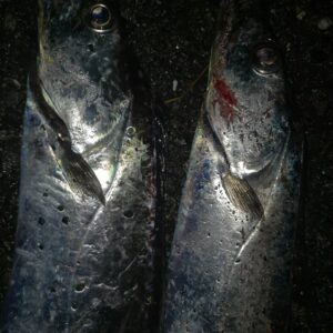 夜の釣りの対象は、アジ、メバル、太刀魚、アオリ、シーバス、サバ、カマス、根魚。青物は残念ながら釣るのは難しくなります。