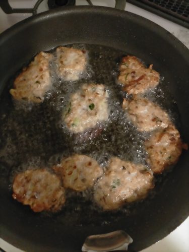 後はひと口サイズのハンバーグにして揚げるだけ。