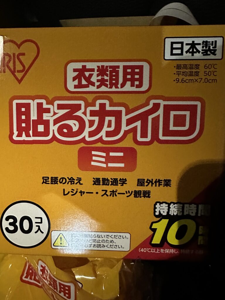 ミニカイロをふくらはぎに貼る事で足元の冷えを抑えられる。