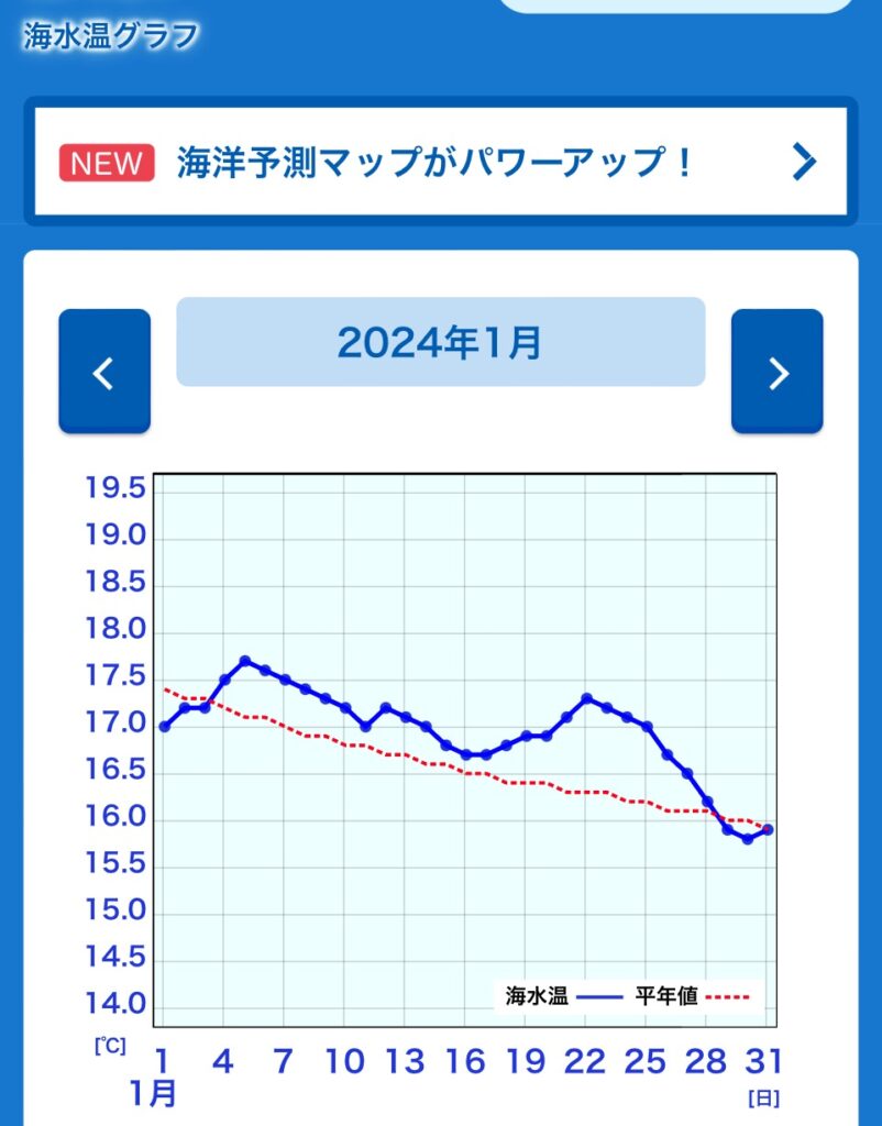 そして2024年は去年からのエルニーニョの影響か、南西風が多く海水温もなかなか下がらない状況が続いている