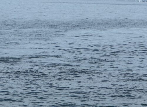 8時前に目が覚め、沖を見ると沖合1kmくらいで鳥山、小さいがボイルあり。