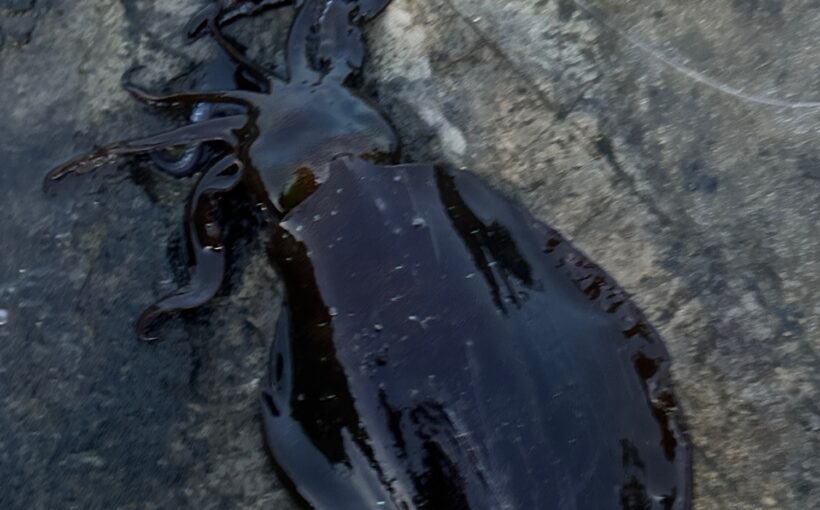 エギ王Kのシャローに変えてゆっくり誘って見ると手前でスミを吐くのが見えた。