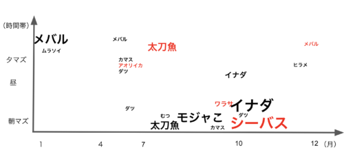 googleスプレットシートやらを使って今年の僕の釣果をヒートマップにしてみた。